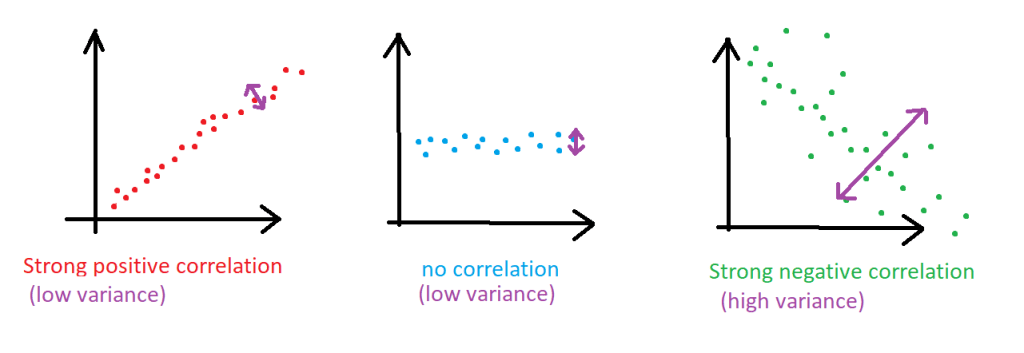 Correlation: It refers to the relationships between features. Correlation tells us which features are strongly related to each other. If there is a strong relationship, the correlation ‚r’ will be large (it can range from -1 to 1). A correlation close to -1 or 1 means that we can remove one of the features without a significant loss of information. For example, if the correlation between two features is -1, it indicates a perfect inverse correlation, which means removing one of the two features will not result in any loss of information.