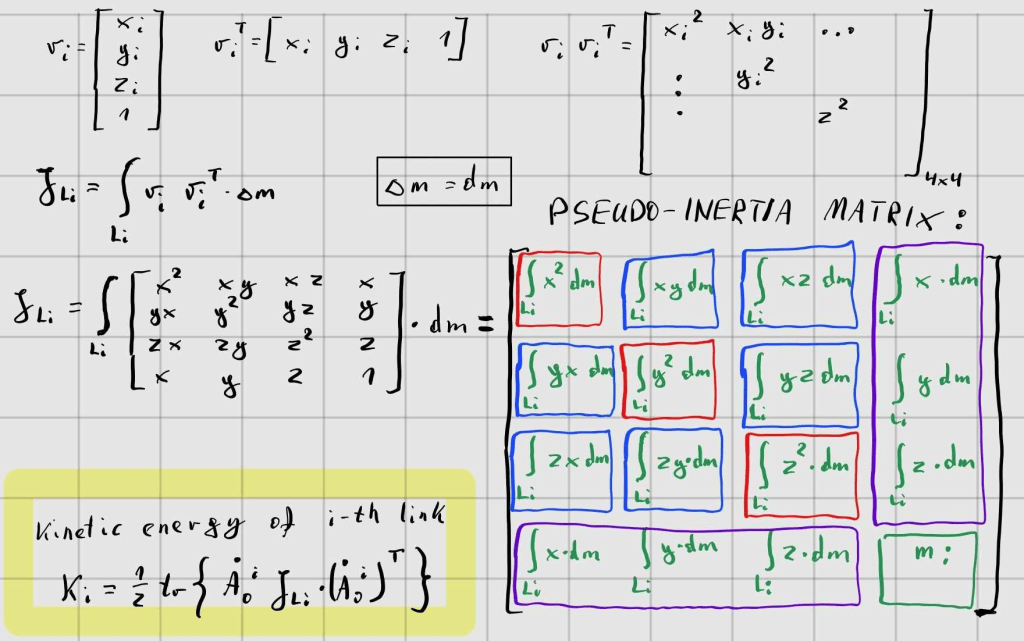 The pseudo-inertia matrix is the equivalent of the mass and moment of inertia of a link. We use it to describe the dynamics of elements.
